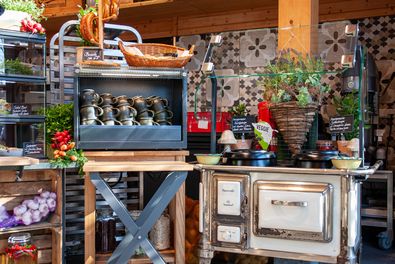 Nach umfassenden Umbaumaßnahmen erwartet Gäste im Marktplatzrestaurant Waldschänke im Zoo Berlin ein modernisiertes, rustikales Ambiente mit Live-Cooking neben dem großen Kinderspielplatz im Zoo.