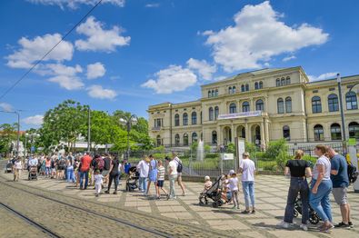 München ist wieder im Ausnahmezustand: Am ersten Wiesntag kamen nach ersten Schätzungen der Festleitung rund eine halbe Million Menschen auf die Theresienwiese. Die verschärften Sicherheitsvorkehrungen schreckten die Gäste offensichtlich nicht.