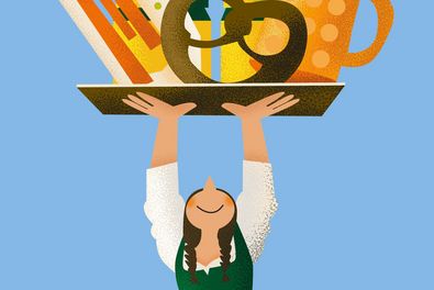 Eine Bedienung im Dirndl, die Bier, Speisen und Musik serviert - all das ziert die Grafik auf dem offiziellen Plakat des Oktoberfests 2025. Das Design ging als Sieger aus dem Wettbewerb hervor und wurde nun von Wiesnchef Clemens Baumgärtner im Münchner Rathaus vorgestellt.