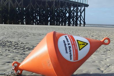 Am Ordinger Strand tummeln sich in diesen Tagen rote Warnbojen rings um die alte Strandbar 54° Nord. Im Frühjahr soll das Gebäude abgerissen werden. Die Bauarbeiten der neuen Strandbar 54° Grad, welche etwa 250m landeinwärts zum alten Gebäude entsteht, schreiten gut voran.