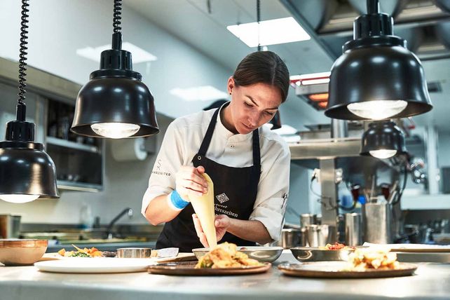 Im Mittelpunkt: Die verwendeten Produkte in ihrer ultimativen Einfachheit – mit kulinarischer Raffinesse. Maike Menzel wurde im Februar 2019 vom Guide Michelin als jüngste Sterneköchin Deutschlands ausgezeichnet. Bereits im August 2018 übernahm sie die kulinarische Leitung des Schwarzreiters, das unter ihrem Vorgänger Anton Pozeg im Januar 2018 mit einem Stern ausgezeichnet wurde.