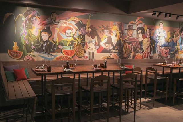 Gekrönt wird der neue Stil des Restaurants durch ein speziell für Ribelli angefertigtes Wandgemälde des Illustrators Olaf Hajek, aus dessen Feder bereits die Tapetenmotive für die Hotelzimmer im Haus stammen. Das circa acht Meter lange Bild, zeigt Hajeks Interpretation des „letzten Abendmahls“