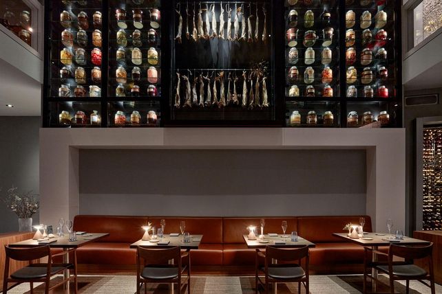 Über die Jahre sind Küchenleistung und Service dem ursprünglichen Umfeld einer Weinbar entwachsen. Was auf den Tellern passierte, fand sich im Ambiente nicht mehr ausreichend wieder. Mit der Umgestaltung wurde nun ein Raum geschaffen, der den Produkten und Weinen wieder eine angemessene Bühne bietet.