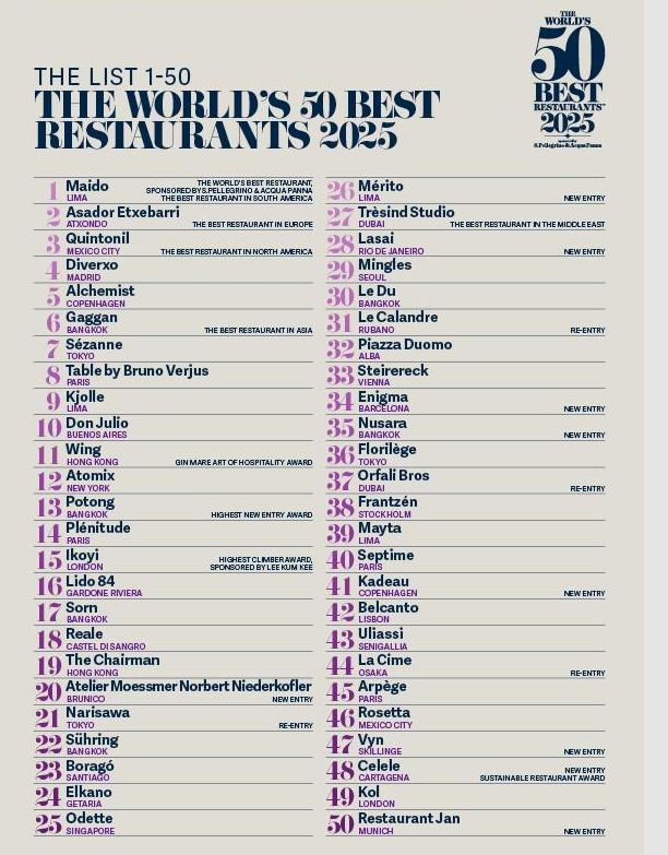 Aus deutscher Sicht gibt es allerdings nur verhaltenen Grund zur Freude: Lediglich ein deutsches Restaurant konnte sich 2025 unter den besten 50 der Welt platzieren. Das Münchner Fine-Dining-Lokal Jan von Küchenchef Jan Hartwig schafft den Sprung auf Rang 50 und ist damit der einzige deutsche Vertreter auf der prestigeträchtigen Liste.