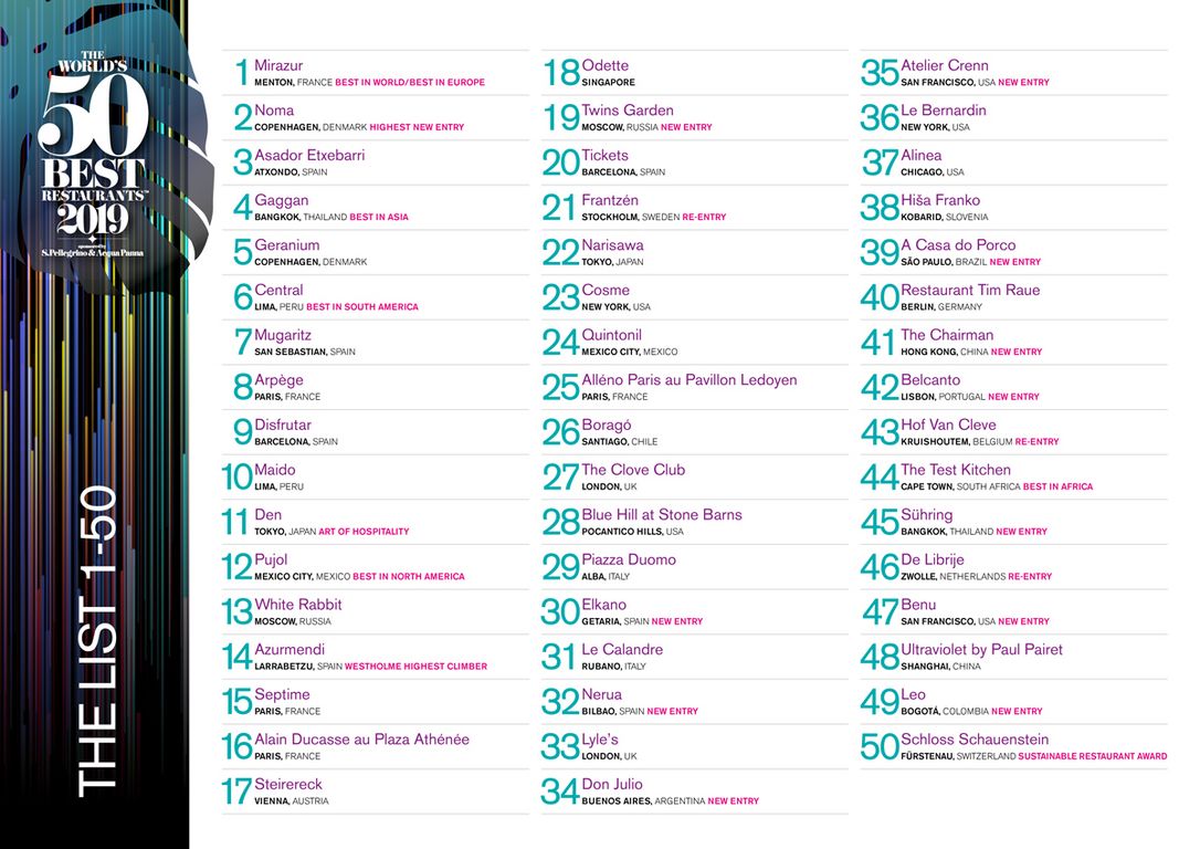 Die Top 50 der besten Restaurants der Welt 2019