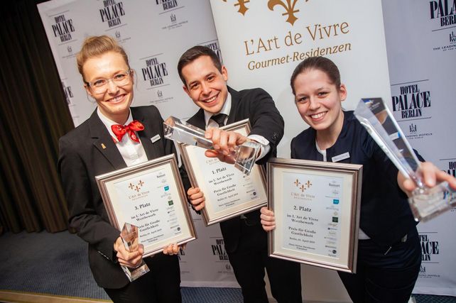 Am 1. April 2019 wurde im Hotel Palace Berlin der Internationale L’Art de Vivre Nachwuchswettbewerb für Servicekräfte in Restaurants und Hotels ausgetragen und der Preis für Große Gastlichkeit 2019 verliehen. Michael Jantscher aus dem The Fontenay Hotel in Hamburg konnte im Wettbewerb auf besondere Weise überzeugen und ist Gastgeber des Jahres 2019. Platz 2 ging an Katharina Garella, ebenfalls aus dem The Fontenay Hotel in Hamburg. Über Platz 3 freut sich Friederike Winkelmann aus dem Hotel Erbprinz in Ettlingen/ Baden-Württemberg.