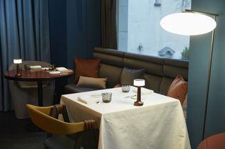 Das Innendesign setzt passend zur Vorgeschichte des Hauses auf viel Stoff: «Als Hommage an die Zeiten als Theater und Varieté haben wir den Gastraum vollständig mit eleganten, schweren Vorhängen umhüllt und mit einem großen Kronleuchter bestückt. Satte Farben wie Türkisblau, Safrangelb und Rostrot treffen auf ruhiges Hellgrau. Im Kontrast dazu ziehen die teils glänzenden Oberflächen der Tische den Blick auf sich und werden so zur Bühne für die Küchenkunst im Igniv», erklärt Patricia Urquiola die Idee hinter dem gewählten Interieur. Der typische Nestcharakter wird durch gestalterische Details weiter hervorgehoben: «Durch edle Materialen wie Samt, Messing und Marmor ist eine sehr behagliche, aber auch glamouröse Atmosphäre entstanden, während die organischen Formen der Sessel und halbrunden Sofas das Kokongefühl eines Nests verstärken.»