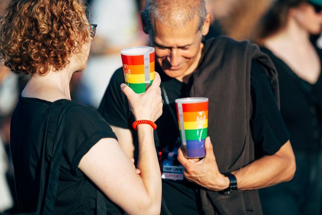 Beim Verpflegungsangebot der Konzerte auf dem Tempelhofer Feld bietet GTB ausschließlich Vegetarisches und Veganes an. Zudem weisen sie an jedem Verpflegungsstand das Gericht mit dem geringsten CO2-Fußabdruck aus, um die Kaufentscheidung für umweltbewusste Konzertbesucher leichter zu machen. Dieser fällt geringer aus als üblich, denn die beauftragten Lebensmittellieferanten wurden nach nachhaltigen Gesichtspunkten ausgewählt. Die Vermeidung von Lebensmittelabfällen hat für GTB eine hohe Priorität, sollte aber doch etwas übrigbleiben, arbeiten sie mit Foodsharing e.V. zusammen, um das Essen zu spenden. Auch ihr verwendetes Geschirr ist so nachhaltig wie möglich: Zum Einsatz kommen überwiegend Mehrwegteller, -Becher und -Besteck. Selbst die unverzichtbare Pommes-Gabel ist nicht wie üblich aus Plastik oder Holz, denn GTB beauftragte extra die Firma Traceless Materials, das kleine Esswerkzeug in limitierter Auflage aus biozirkulären Materialien herzustellen. Der Strom, den die Aramark-Tochter für ihre Verpflegungsstände benötigt, stammt zu 100 Prozent aus ökologischen Quellen, so wie auch der gesamte Feststrom, den das Labor Tempelhof für die Konzerte verwendet.