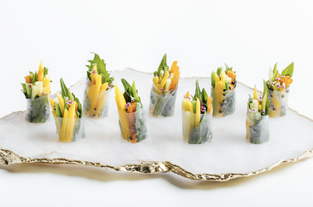 - Vegetable rice paper roll, mango, papaya, mint, Thai basil (V/AG)