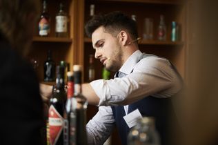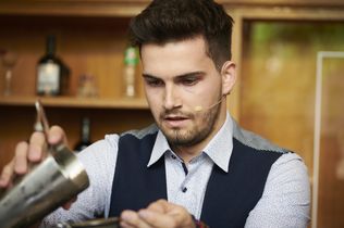 Roter Wermut von Belsazar, Puchheimer Zirbengeist, Blütenhonig, Tomatenessig und trockenes Swiss Mountain Spring Tonic Water bilden die Basis des „Tschi Es Ej“ Cocktails, mit dem der Wiener Bartender Valentin Bauer (21) die siebte Made in GSA Competition für sich entscheiden konnte.
