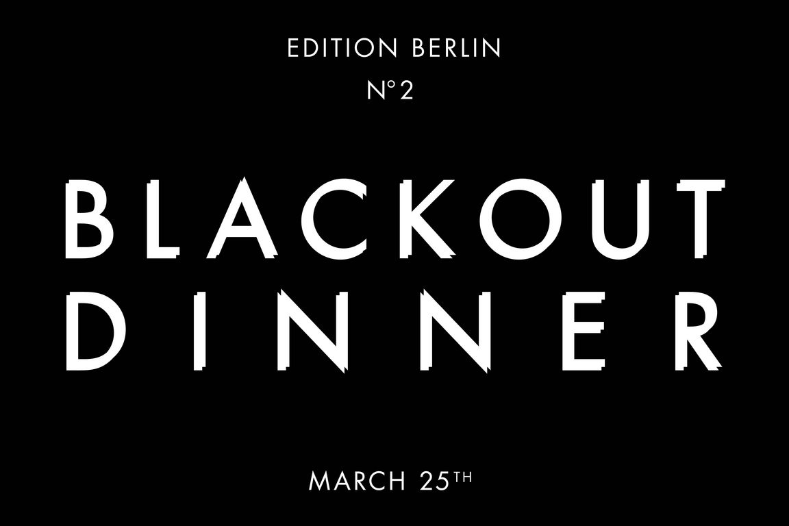 In Berlin ist dies mittlerweile das zweite Blackout Dinner. Am 25. März laden Spitzenköche in den ehemaligen Schlackekeller des Heizkraftwerks Rüdersdorfer Straße. Gestaltet wird der Abend vom Tulus Lotrek, Kin Dee, Cordo, Hoflieferanten, Sophia Rudolph (Ex – Panama, Berlin) und dem Nobelhart & Schmutzig. Auf die Gäste wartet ein Family-Style-Abendessen bei Kerzenlicht zu Musik von Eren Solak. Kameras sowie Handys sind dabei streng verboten.
