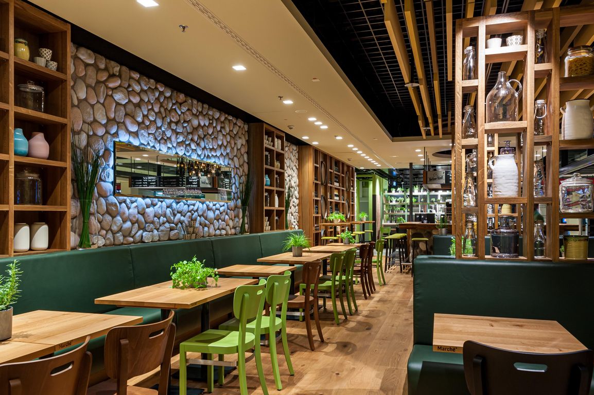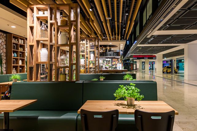 Das Interior Design setzt auf Holzelemente, eine große Bier- und Weinbar sowie einen Sitzbereich mit rund 100 Plätzen. Ergänzt wird das Angebot durch Desserts, Kuchen, frisch gepresste Säfte sowie einem Kaffee- und Tee-Angebot. Alle Produkte können auch mitgenommen werden.