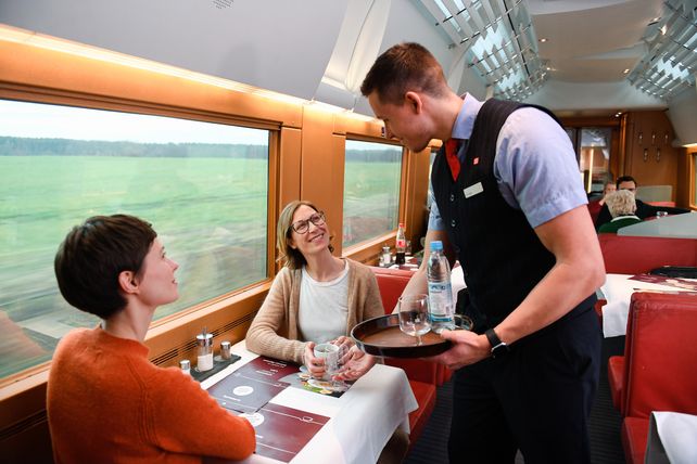 «Wir wollen, dass die Kunden in Zukunft ihre Gastrobestellung per App aufgeben können», sagte DB-Fernverkehrschef Michael Peterson der Zeitung. In der ersten Klasse bekämen Reisende ihre Bestellungen an den Platz geliefert. In der zweiten Klasse müssen sie Snacks und Getränke demnach im Bordbistro abholen, werden aber per App informiert.