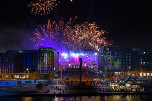 Die Eröffnungsfeierlichkeiten fanden am Abend mit einer Licht-, LED-, und Wasser-Show sowie einem Feuerwerk ihren feierlichen Abschluss. Besucher waren anschließend herzlich eingeladen, in der Verti Music Hall bei einer Party mit radioeins weiter zu feiern.