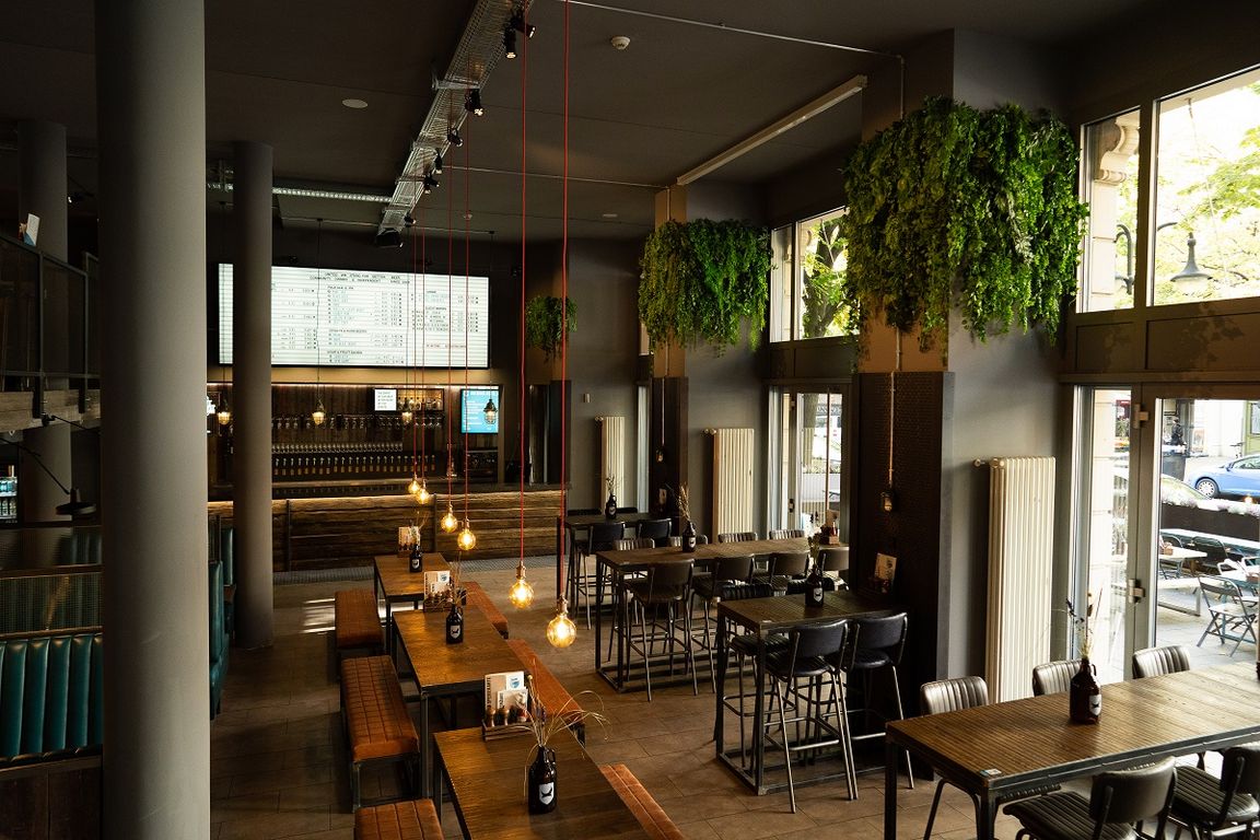 Insgesamt 36 Zapfhähne an der Hauptbar und auf dem Mezzanine warten auf Fans der Biervielfalt. Die Küche liefert das BrewDog Menü, von Burgern über Chicken- und Cauliflower Wings bis Pizza. Auch hier gilt, wie für alle BrewDog Bars: Das Menü ist immer mindestens zur Hälfte vegetarisch und zu einem Viertel vegan. Auch die BrewDog typischen Specials wie Wings Wednesdays und das Kids Hoppy Meal sowie Tap Takeovers mit befreundeten Brauereien wird es in Frankfurt ab sofort geben.