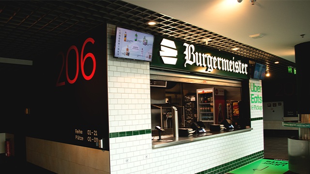 Zusätzlich wurde in der Verkaufszone ein Uber Eats Pick-up-Spot eingerichtet. Dort können die bestellten Burger abgeholt werden. Durch ein umfassendes Kommunikationspaket soll Burgermeister in der Arena prominent sichtbar sein.