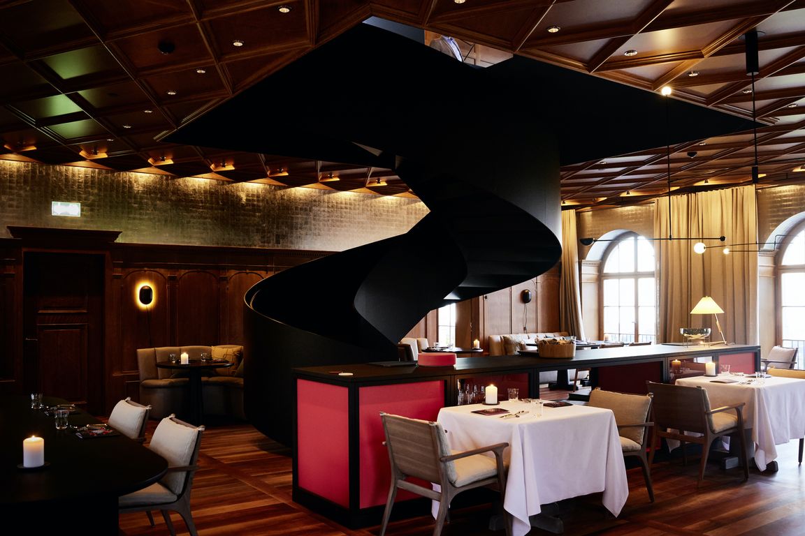 Der Wiedereröffnung des Restaurants und Boutiquehotels ist eine viermonatige Neugestaltung der Räumlichkeiten vorausgegangen. Caminada und Germann hatten klare Vorstellungen: «Wir wollten im Inneren die besondere Patina der Räume sowie die schöne Haptik der Materialen wirken lassen und so ein warmes Ambiente schaffen», erklärt Caminada das Leitmotiv. Viele zuvor metallisch-glänzende Elemente wurden durch sanftere Farben überarbeitet. So liessen die Partner die monumentale Aluminium-Wendeltreppe, welche Gäste von der Aperitif Lounge ins Restaurant führt, in Mattschwarz tauchen.