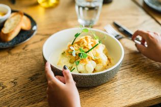 „Wir kochen frisch und kreativ, bleiben aber nahbar und bodenständig“, erklärt Stefan Tischer, Küchenchef in Carls Brasserie. „Unser Ziel ist es, Einheimischen, Urlaubern und Ausflugsgästen in Travemünde einen Ort zu bieten, wo sie unbeschwert genießen können – danach sehnen wir uns alle nach zwei Jahren Pandemie!“