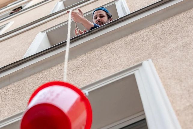 Ein roter Eimer an einem Seil vor einer Hausfassade ist inzwischen ein Anziehungspunkt für Feinschmecker in Berlin-Mitte geworden. Er ist das Markenzeichen für die selbst gemachte japanische Nudelsuppe Ramen von Christopher Selig. Mit dem Eimer seilt der Koch die Suppe aus einem Fenster seiner Wohnung zu seiner Kundschaft herab. Bei jeder Lieferung dabei: Ein Becher Suppe, ein Becher Einlage mit Nudeln, Fleisch und Gemüse. Da haben auch schon Promis zugegriffen. Der Schauspieler Jimi Blue Ochsenknecht oder der Koch The Duc Ngo haben seine Nudelsuppe schon gegessen, wie Selig der Deutschen Presse-Agentur verriet.