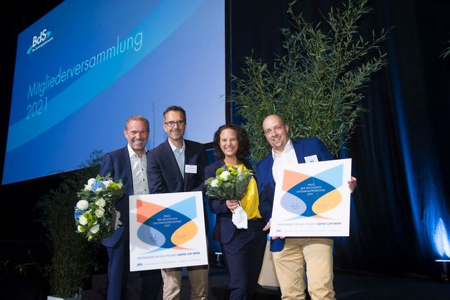 Die BdS-Mitgliederversammlung stand ganz im Zeichen des Mottos des aktuellen BdS-Jahresberichts: „Erfahrung“. Highlight des Tages war die Verleihung des Preises der Deutschen Systemgastronomie 2021, mit dem strahlenden Gewinner „Coffee Cup Paper“, der durch eine technische Innovation das nachhaltige Recycling von Einwegbechern ermöglicht.