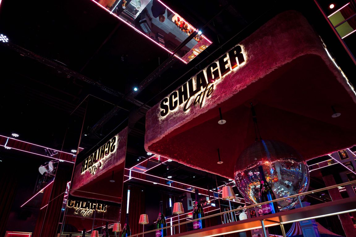 Ein gestalterisches Highlight ist das Interieur, realisiert vom Designteam Superstudio21. Zwischen Discokugeln und samtbezogenen Wandelementen findet sich eine der wohl größten Sammlungen originaler Schlager-Devotionalien: unter anderem der Diamond Award von Helene Fischer, ein Bühnenkleid von Maite Kelly, ein Anzug von Ross Antony, der Schottenrock der Band Brings sowie zahlreiche signierte Gold- und Platinplatten.