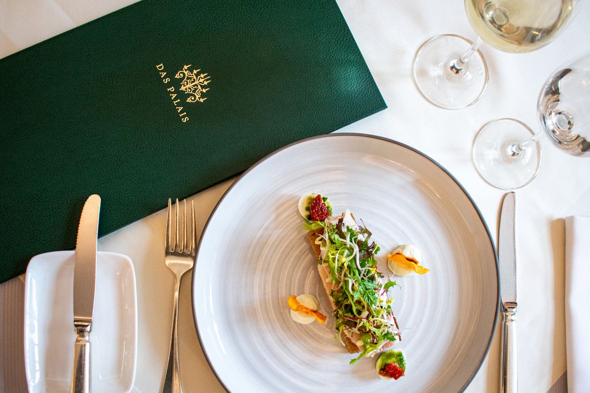 „Das Palais“ ist mit einer neuen hellen Innenausstattung und seinen charakteristischen Kronleuchtern noch eleganter geworden und bietet Platz für rund 60 Gäste. Der ehemalige begehbare Weinschrank kann nun als „Private Dining-Room“ für bis zu sechs Personen gebucht werden. Auf der in den Sommermonaten beliebten Terrasse stehen weitere 120 Plätze zur Verfügung. In der Sommerzeit ist das Restaurant mit seiner Terrasse täglich außer mittwochs von 12 bis 21.30 Uhr geöffnet.