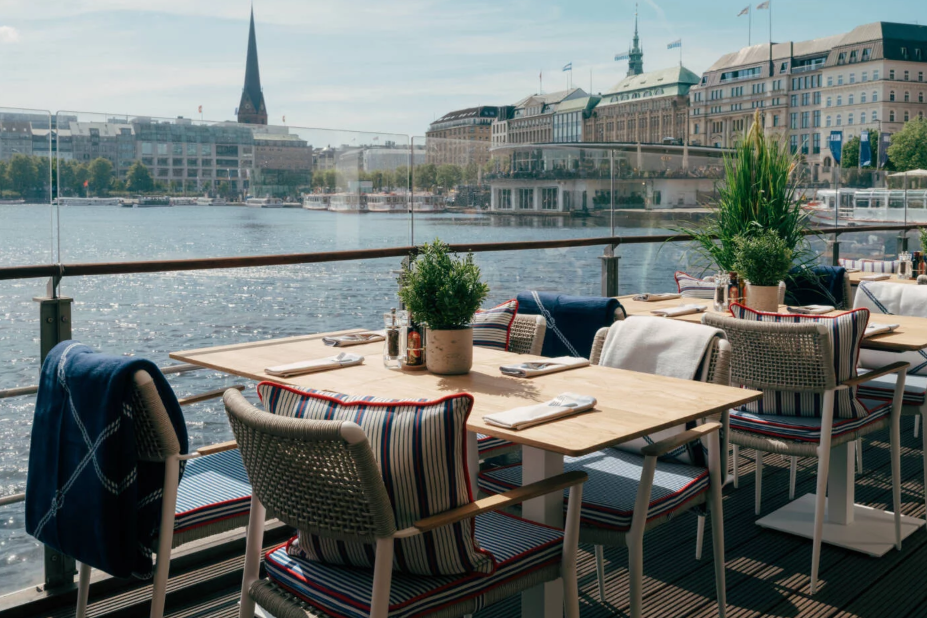 Über 15 Jahre nach der Eröffnung der ehemaligen „Jahreszeiten Terrasse“, feiert die großzügige Sommerterrasse unter dem neuen Namen Deck 4 ihre Wiedereröffnung. Das neue Konzept verbindet norddeutsche Eleganz mit maritimem Flair. Zudem schafft das neue Interieur in klassischem Blau und Weiß, kombiniert mit hochwertigen Holzmöbeln, eine stilvolle Atmosphäre direkt am Wasser mit freiem Blick auf die historische Alsterfontäne. DECK 4 heißt Hamburger und Besucher der Stadt gleichermaßen willkommen, die Sommermonate in entspannter hanseatischer Atmosphäre zu genießen.