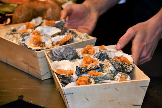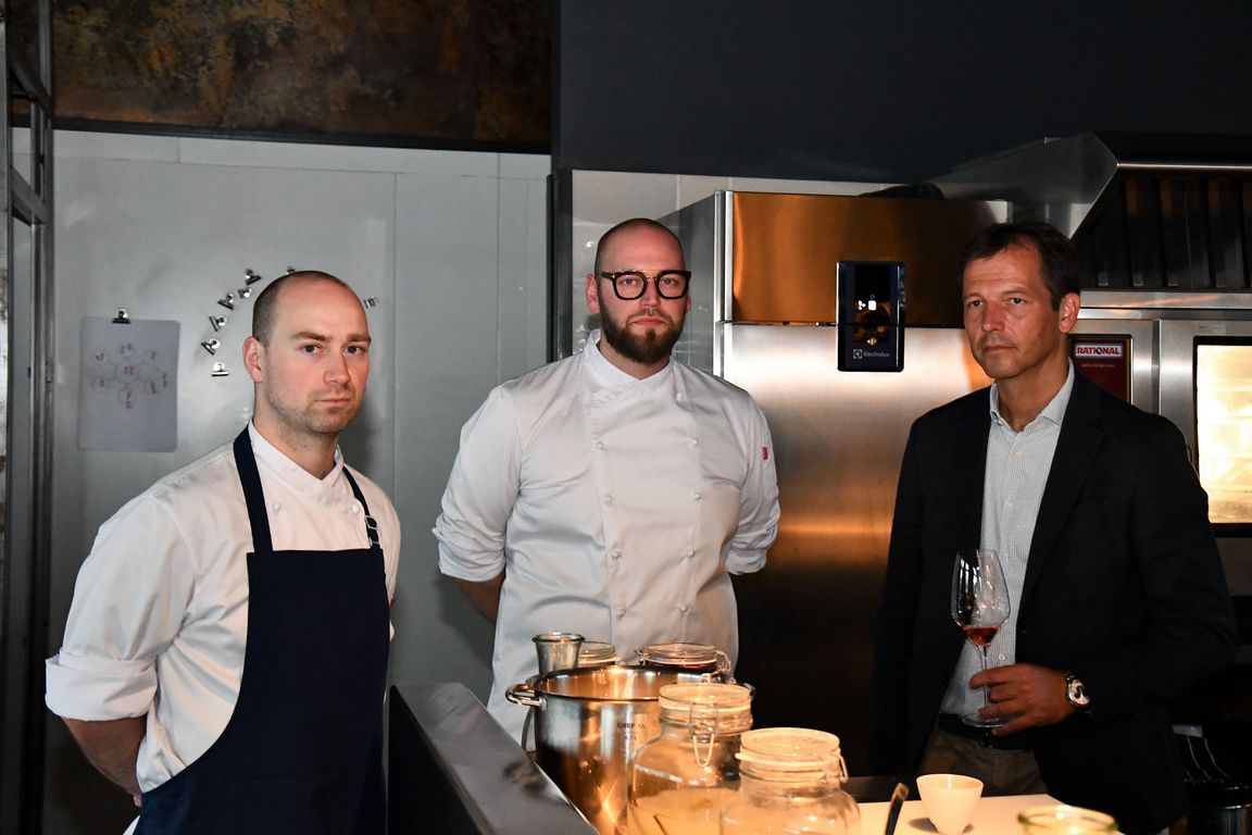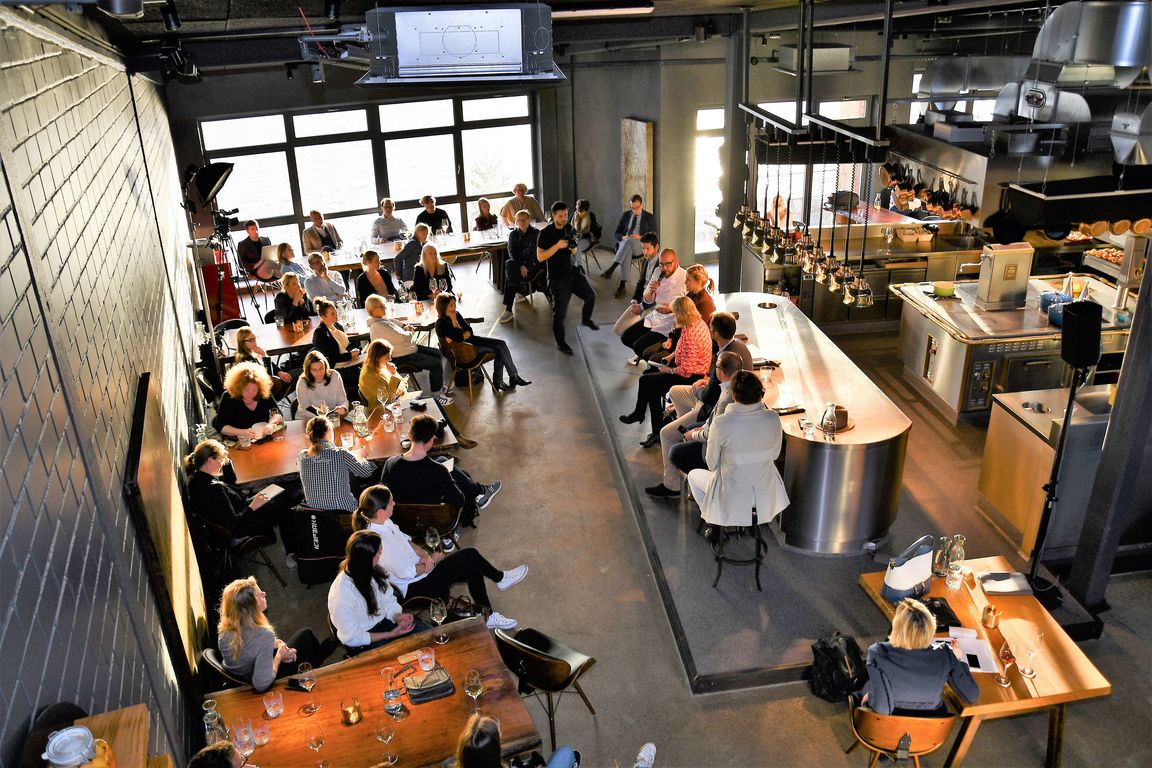 Im Anschluss an die Talkrunde ging die Diskussion im kleinen Kreis weiter. Als perfekte Bühne des ersten großen Chef´s Talk diente das neu eröffnete Restaurant 100/200 Kitchen von Thomas Imbusch. Imbusch verwöhnte seine Gäste mit mehreren kleinen Gerichten aus der offenen Küche. Unterstützt wurde die Veranstaltung von den beiden Weingütern Dreissigacker (Rheinhessen) und Anette Closheim (Nahe).
