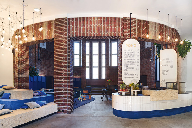 „Wir haben das PONG erdacht für die Gegenwart mit Blick in die Zukunft und Respekt für die Vergangenheit. Bauen im Denkmal muss dem Alten schmeicheln, durch Neues überzeugen und immer eine Symbiose eingehen“, findet Interior Designer Moritz Köhler.
