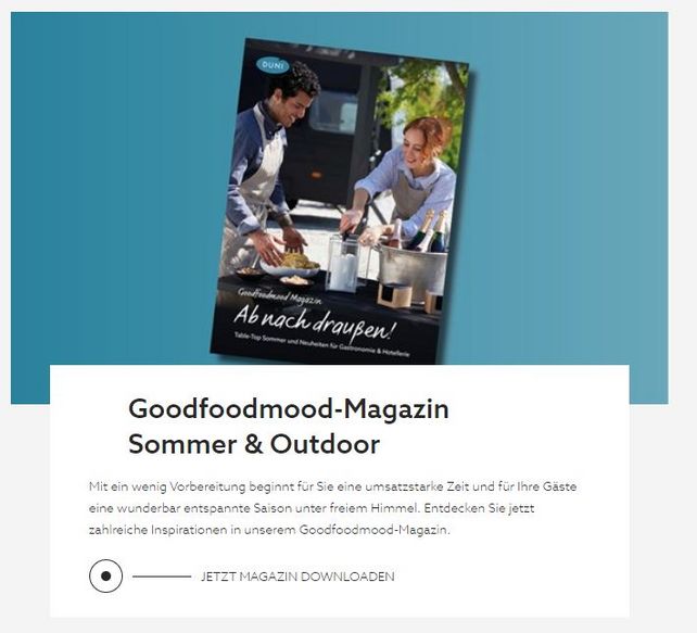 Über die weiteren Informationen und den kostenfreien Ratgeber mit den DUNI Außengastro-Tipps können sich interessierte Gastronomen über die Landingpage für den Sommer-Outdoor-Genuss informieren: de.dunigroup.com/duni/summer-outdoor