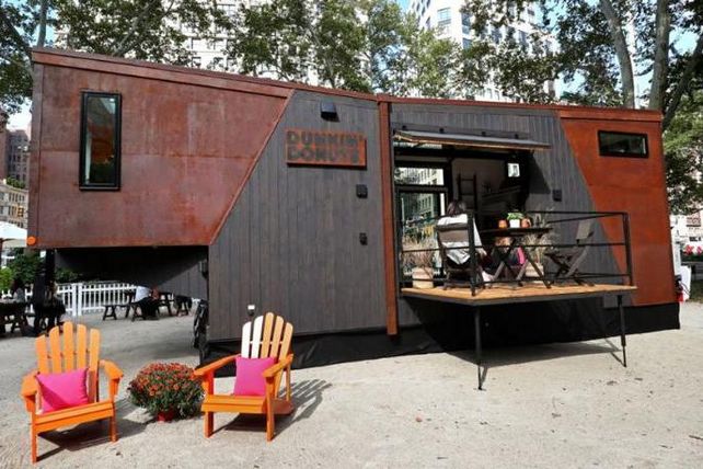Mit einem sogenannten „Tiny House“ setzt nun auch die Donut-Kette Dunkin auf den Minimalismustrend. Entworfen hat das kleine Häuschen die Architekturfirma New Frontier Tiny Homes, deren Kreation mit Biodiesel aus Kaffeesatz betrieben wird. Wer im mobilen Haus mit knapp 26 Quadratmetern übernachten möchte, wird für zehn Dollar die Nacht bei Airbnb fündig. An die Versorgung wurde ebenfalls gedacht: Übernachtungsgäste können soviel Kaffee trinken, wie sie möchten.