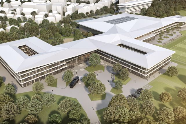 In den kommenden Wochen werden in dem rund 50.000 Quadratmeter großen Neubau die Verwaltung und die Akademie des Deutschen Fußball-Bundes einziehen. Neben dem Verwaltungstrakt befinden sich hier zudem ab Sommer 2022 über 40 Konferenzräume, eine Multifunktionshalle, ein Athletenhaus mit 33 Zimmern sowie zahlreiche Trainings- und Sporteinrichtungen.