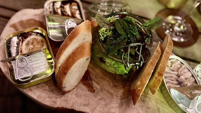 So geht’s: Aus der Crème de la Crème zwei Sardinen- oder Thunfischsorten aussuchen und das Ganze kommt mit Salat und Brot an den Tisch. Von der Jahrgangs-Sardine bis zum mit Hand und Haken gefischten Thunfisch in allen Variationen können sich die Gäste ihren Favoriten aussuchen. Währenddessen schenkt die neue Champagneria den Gästen spritzig ein.