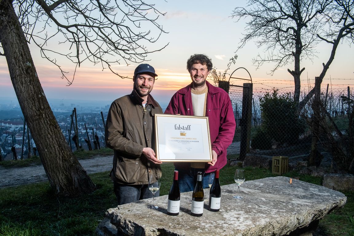 Im Dreiländereck ganz im Südwesten des Landes sind die frisch gekürten Newcomer des Jahres zuhause: In Weil am Rhein, in Sichtweite Basels und im Sendebereich des französischen Rundfunks, haben Johannes und Christoph Schneider vor wenigen Jahren das elterliche „Weingut Am Schlipf“ übernommen. Seither treiben sie schon zuvor hoch angesehenen Weine des Betriebs in die Richtung einer radikalen Handwerklichkeit. Da die Weine zuspitzen, ohne zu verschrecken, gelingt den Brüdern ein Neuanfang, der kein Bildersturm auf die Vergangenheit ist. Eine Erfolgsgeschichte – so sah es auch die Falstaff-Jury.