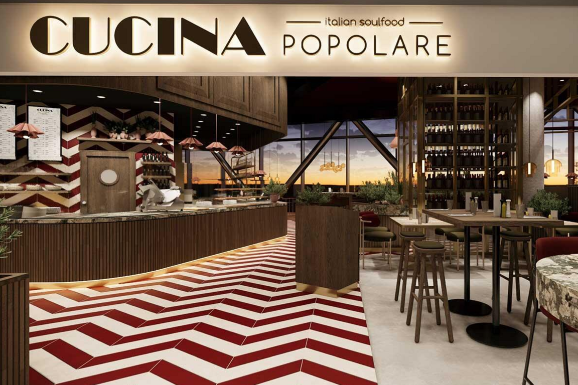 Ein weiteres Angebot ist „Cucina Popolare“, das laut Mitteilung italienische Küche mit klassischen Gerichten wie Pizza und Pasta bietet. Das Restaurant verfügt über rund 120 Sitzplätze.