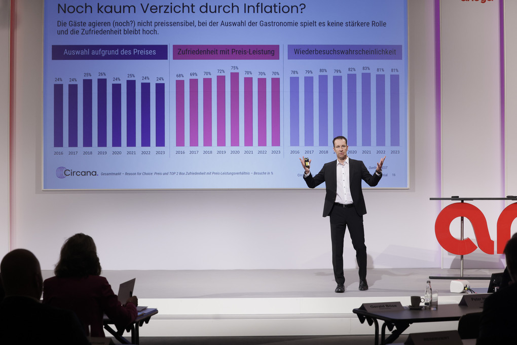 Neueste Zahlen zum Außer-Haus-Markt, Szenarien und Trends im Gepäck hatte Marktforscher Jochen Pinsker, Industry Advisor Foodservice Europe von Circana. Jede Menge Denkanstöße und innovative Lösungsansätze gab es auch beim Branchentalk „Lernstoff aus drei Jahren Krise: Worauf es jetzt ankommt. Was heute für nachhaltigen Erfolg wirklich zählt.“