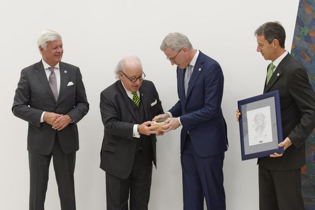 Es war eine ganz besondere Veranstaltung, zu der sich ausgewählte Persönlichkeiten aus der Hotellerie und Gastronomie mit Familie, Freunden und Geschäftspartnern des Teehauses Ronnefeldt am 16. November in Holbein’s Restaurant in Frankfurt trafen. Erstmals wurde ein Preisträger nach seinem Tode mit der Brillat Savarin-Plakette, einer der höchsten Auszeichnungen des Gastgewerbes, geehrt. Diese Ehre wurde Frank Holzapfel zuteil, Gesellschafter der J.T. Ronnefeldt KG, der in Anerkennung und Würdigung für sein beeindruckendes Lebenswerk posthum die 64. Brillat Savarin-Plakette verliehen bekam. Frank Holzapfel übernahm 1984, im Alter von 45 Jahren, als allein haftender Gesellschafter das Teehaus Ronnefeldt, veränderte die Unternehmensstrategie und positionierte die Marke Ronnefeldt wieder zurück zu ihrem Ursprung als Genuss- und Luxusprodukt für die 4- und 5-Sterne Hotellerie. Jan-Berend Holzapfel, der das Unternehmen seit 2012 leitet, nahm die Auszeichnung stellvertretend entgegen.