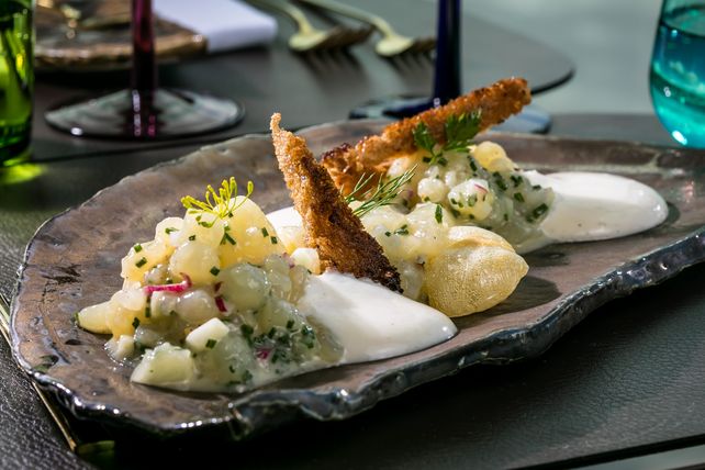 Die Küche im Franziska ist inspiriert von den Gerichten der Großtante des Mook-Group-Gründers Christian Mook. Seine geliebte Tante war nämlich nicht nur eine äußerst liberale und resolute Grande Dame, sondern auch eine begnadete und innovative Köchin, wird berichtet. Sie beherrschte dabei virtuos alle Facetten der Kochkunst. Ihr Anspruch war schon damals in vielen Aspekten sehr modern und progressiv. Sie wollte immer ethisch, ökologisch und möglichst regional kochen. Sie pflanzte ihr eigenes Gemüse und erntete ihr eigenes Obst. Die Dame war darüber hinaus aber auch eine Pionierin der Fusionsküche. Sie belegte beispielsweise Pizza mit Ahler Worscht, servierte hausgemachte Ravioli mit Handkäsefüllung oder backte ihre Holunderblüten im Tempura-Teig aus. Interessanterweise stand das Haus von Tante Franziska genau am Fuße des Henninger Turms. Die Idee, das Restaurant im neuen Henninger Turm nach der Großtante zu benennen, war also aus vielerlei Hinsicht geradezu unvermeidlich. Küchenchef im neuen Henninger Turm ist Frank Möbes. Er und sein Team haben es sich zur Aufgabe gemacht, den Esprit und den kulinarischen Geist von Tante Franziska wieder aufleben zu lassen.