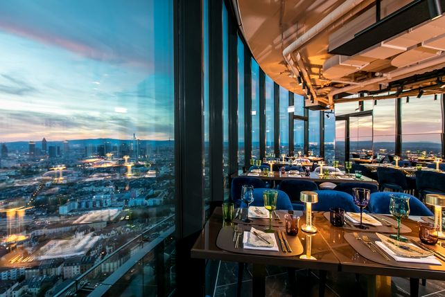 Was lange währt, wird endlich gut: Mit einiger Verspätung hat im Henninger-Turm in Frankfurt das Restaurant Franziska eröffnet. Durch die verglasten Panoramafenster bietet sich den Gästen ein 360-Grad-Blick auf die Skyline und das Umland. Weiteres Highlight: ein offener Küchen-Tresen: Damit verbinden sich im Franziska zwei aktuelle Gastro-Trends: Chef's-Table-Counter und Rooftop-Dining, sagt der Bertreiber.