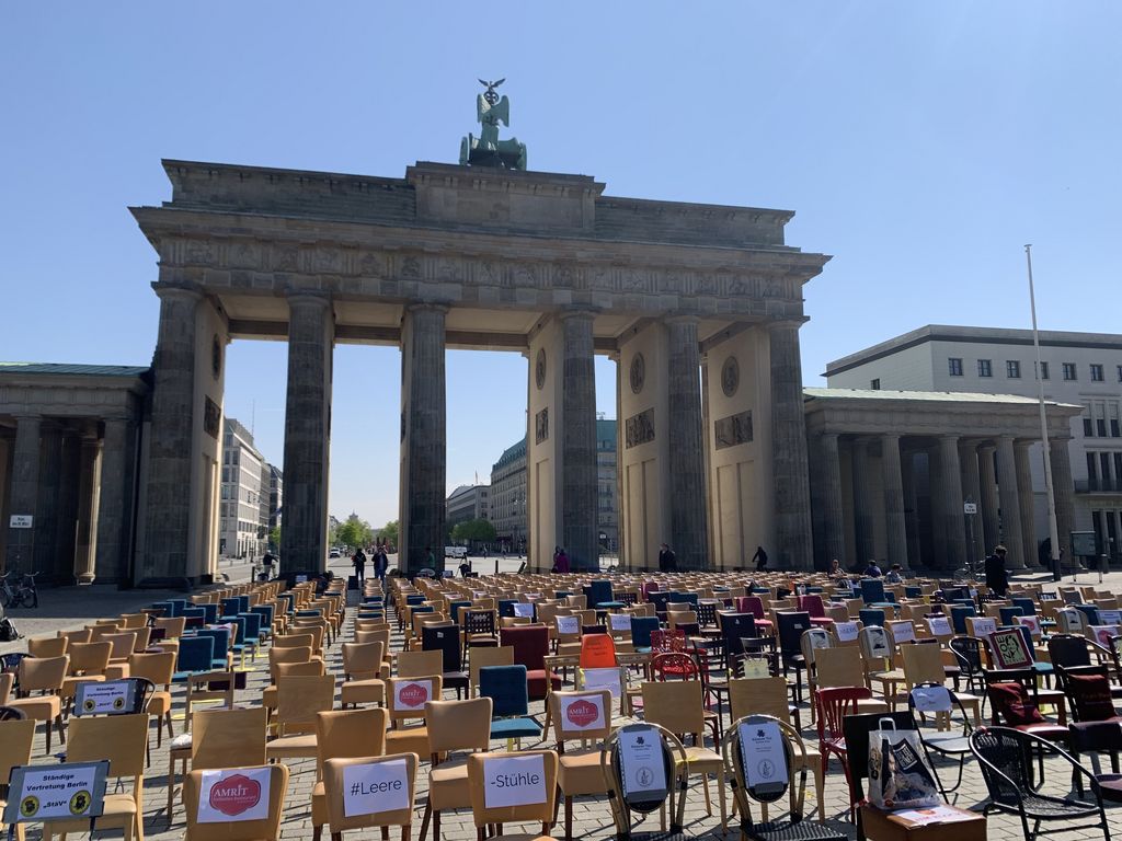 Mit leeren Stühlen haben Gastwirte heute in fast 80 Städten ein Zeichen gesetzt, um auf die kritische Lage von Gaststätten und Hotels in der Corona-Krise aufmerksam zu machen. Betriebe aus dem ganzen Land beteiligten sich an der Aktion. Auf dem Frankfurter Römerberg waren es den Angaben zufolge beispielsweise knapp 1.000 Stühle, die aufgestellt wurden.