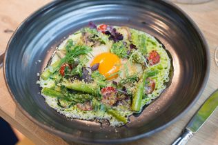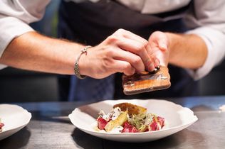 Auch kulinarisch gilt das Prinzip der Nachhaltigkeit. So soll Küchenchef Felix Adebahr traditionelle Verarbeitungsweisen wie Einwecken oder Pickeln verwenden und die Lieferanten produzieren möglichst lokal sowie ökologisch verantwortungsvoll. Wie exklusiv-muenchen.de berichtet, sollen 99 Prozent der Weine Bio zertifiziert und korkfrei sein. Der Bio-Kaffee soll aus regionaler Produktion stammen und Tee werde lose ohne Verpackung und Beutel gereicht. Sogar die Sneaker der Mitarbeiter wurden von einem Münchner Start-up produziert und bestehen aus italienischem Traubentrester – natürlich vegan!