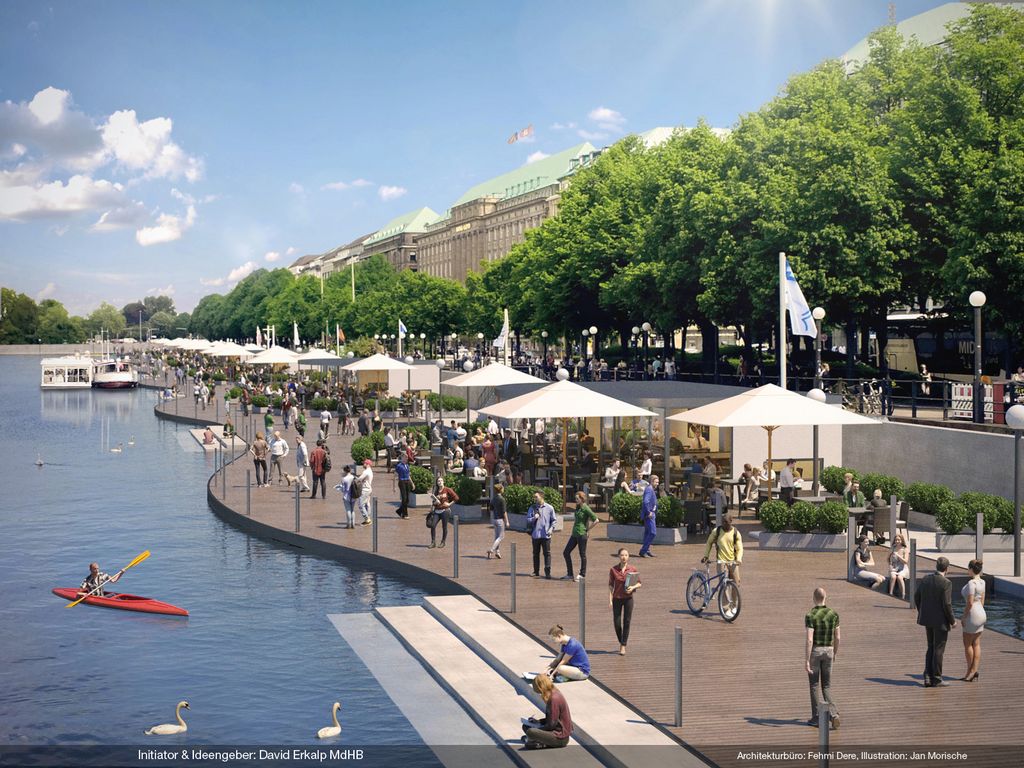Durch die Errichtung der Alsterpromenade würde Hamburg einen weiteren Anziehungspunkt mit großer Strahlkraft nach außen erhalten und gleichzeitig den Freizeitwert für die Hamburgerinnen und Hamburger mitten im Stadtzentrum erhöhen, aber auch die allgemeinen Besucherströme entzerren und sie in die City lenken.