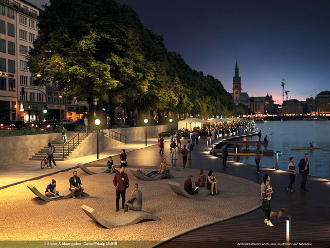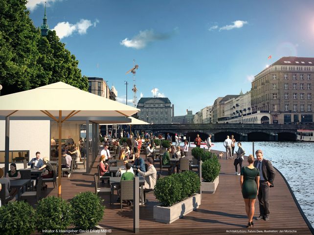 Ideengeber André Trepoll, Vorsitzender der CDU-Fraktion in der Hamburger Bürgerschaft sagt: „Eine Stadt wie Hamburg braucht Ideen und Dynamik, um langfristig erfolgreich zu bleiben. Da dem rot-grünen Senat die Fantasie und der Mut fehlen, schlagen wir den Hamburgern unser Projekt Alsterpromenade zur Attraktivitätssteigerung der Binnenalster vor.“ In der jahrhundertealten Tradition Hamburgs sei die Binnenalster immer ein belebtes Quartier, das zum Flanieren am Wasser und zum Speisen in Cafés und Restaurants eingeladen habe. Diesen Lebensmittelpunkt wollen will die CDU den Hamburgern zurückgeben und gemeinsam mit ihnen „zurück zum Wasser“. Andere Städte, wie Paris mit seinem Seine-Ufer, seien bereits genau diesen Weg gegangen.