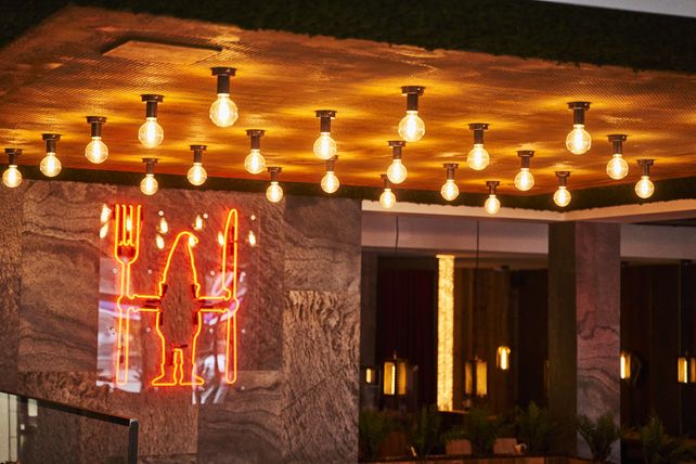 „Auch unser neues Restaurant im Tal bedient sich natürlicher Elemente, wie Altholz, Naturstein und Messing – spielt diese Elemente aber sehr modern und klar aus und lässt viel Raum für Blicke und Begegnungen von Menschen“, erklärt Keyserlingk. So wurde etwa die prägnante Bar nach vorne in den Gastraum versetzt. Die in jedem HeimWerk vorhandene Wasserstation zum kostenlosen Selberzapfen wurde hier aus altem Kalkstein gefertigt. Für Transparenz und viel Offenheit sorgen niedrige Stellwände und Einblicke in die Küche. „In unseren Restaurants gestalten wir eine ganzheitliche Atmosphäre, die das ‚Erlebnis Essen‘ erweitert zum ‚Erlebnis HeimWerk‘.“