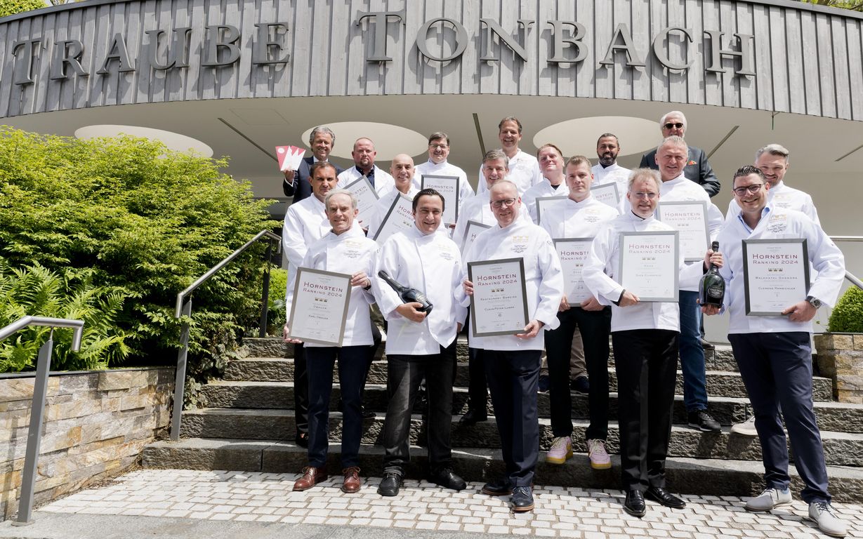 Seit 43 Jahren fasst das Hornstein-Ranking die Ergebnisse der führenden Restaurant-Guides in Deutschland, Österreich, Südtirol und der Schweiz zusammen. Das aktuelle Hornstein-Ranking 2024 wurde am Montag in der Traube Tonbach in Baiersbronn vorgestellt. Die feierliche Veranstaltung für rund 30 geladene Gäste und Spitzenköche fand im Drei-Sterne-Restaurant Schwarzwaldstube statt und wurde mit einem Champagner-Menü aus der Feder von Torsten Michel zelebriert.