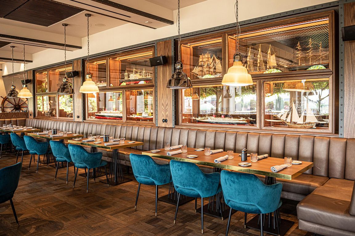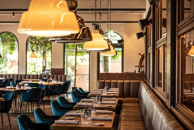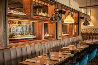 Umgeben von historischen Schiffsmodellen servierte das Team im Restaurant Port 40 Jahre lang regionale und saisonale Spezialitäten vor der Kulisse des Hamburger Hafens. Auch nach dem Umbau bleibt die Seefahrtsgeschichte allen Gästen erhalten – das Interieur wurde jedoch edler und moderner gestaltet: Neben Fernrohrlampen schaffen die 583 handgefertigten Wandfliesen und holzverkleidete Details eine hanseatische Atmosphäre.