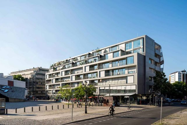 Es handelt sich um eine insgesamt fast 270 qm umfassende Fläche (Erdgeschoss und Untergeschoss) mit Südausrichtung und Orientierung zum Fromet-und-Moses-Mendelssohn-Platz, die dank ihrer Ecklage weithin sichtbar ist. Auf dem Platz ist eine großzügige Außenbestuhlung möglich. Die großen Schiebetüren der Glasfassade lassen sich zum Platz hin öffnen. Vorhanden sind ebenso ein Lastenaufzug zum großräumigen Lager, ein eigener Müllraum, ein separater Eingang für Anlieferungen sowie Fettabscheider und Abpumpleitung. Angrenzend befindet sich ein bereits bespieltes und vermietetes Bistro (Café-Bäckerei).