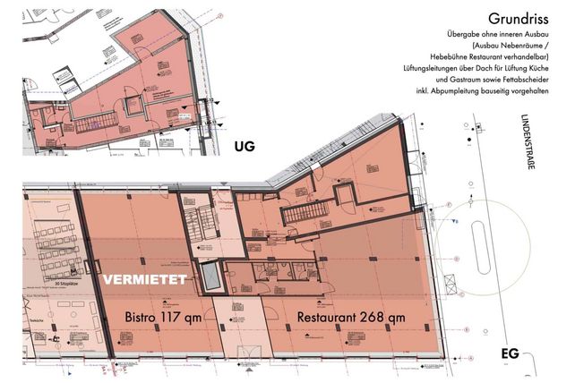 EG gesamt: 191,19 qm, davon Restaurant 129,76 qm