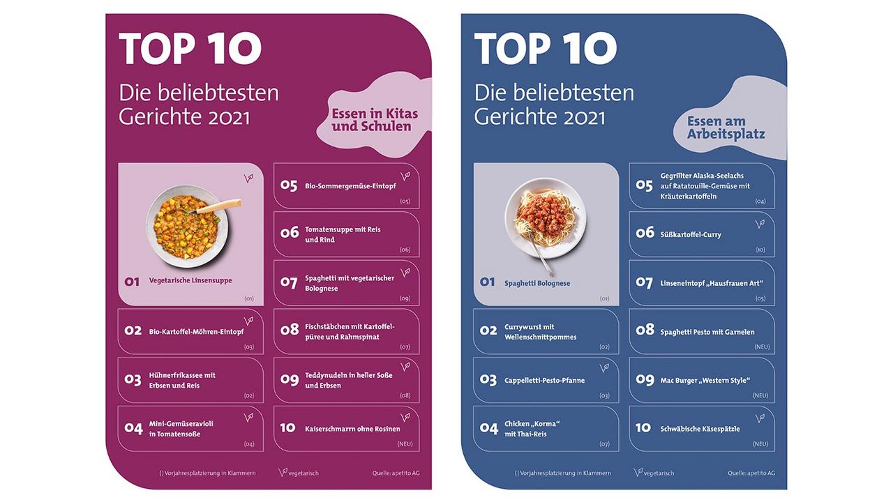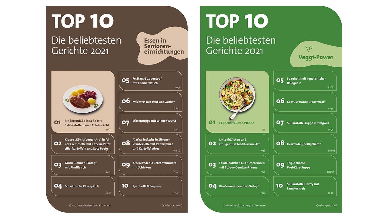 Die Menü-Charts des Jahres 2021 hat der Verpflegungsanbieter apetito AG anlässlich seiner Bilanzpressekonferenz präsentiert. Das Unternehmen aus dem nordrhein-westfälischen Rheine wertet jährlich die Menünachfrage im deutschen Systemgeschäft aus.