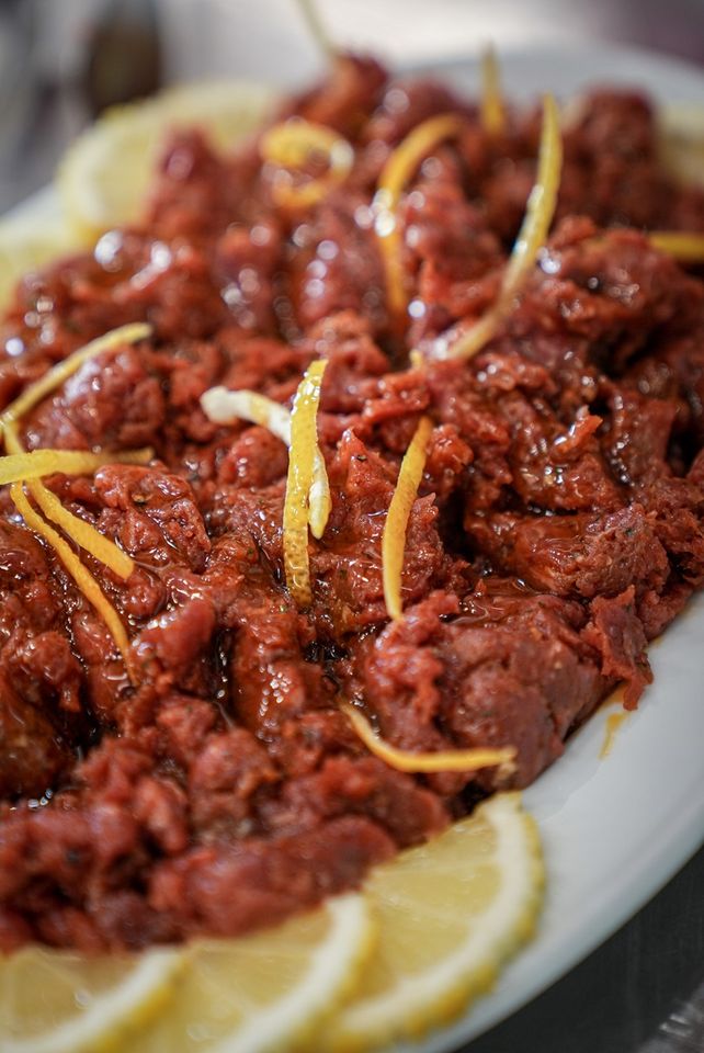 Das Degustationsmenü „CECCHINI GRIGLIA“ bringt das berühmte Panzano-Erlebnis nach Florenz, mit zwei Seatings pro Tag, um 13:00 und 20:00 Uhr, an einer langen Tafel. Das gesellige Festmahl beginnt mit einem Glas Wein und Darios sogenanntem „Burro del Chianti“, einem mit Kräutern gewürzten, geschlagenen Schmalz, das sehr leicht ist. Als Nächstes folgen die Gänge, die Darios Engagement für das Beste der traditionellen toskanischen Küche veranschaulichen, wobei jeder Teil des Tieres gewürdigt wird. Den Gästen werden Rindertatar (oder wie man in Panzano sagt, Chianti-Sushi), Rindercarpaccio und Bistecca alla Panzanese (Rinderbraten) kredenzt. Die Steakstücke werden mit den traditionellen Beilagen Cannellini-Bohnen und in Folie gebackenen Kartoffeln serviert.